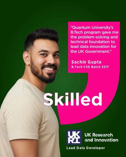Quantum University, located in Roorkee, Uttarakhand, is a leading private university known for its industry-oriented programs, strong placement record, and interdisciplinary education model. The university focuses on preparing students for real-world careers by combining academics with practical training, certifications, and corporate exposure.